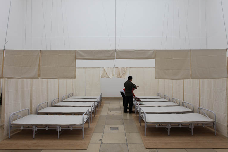 Previous ImageNext Imageai weiwei 2 童话(宿舍) 2007/2009 木头、钢架、布料、塑料、 竹子、灯 200 × 781 × 545 cm 展览现场 艺术之家慕尼黑