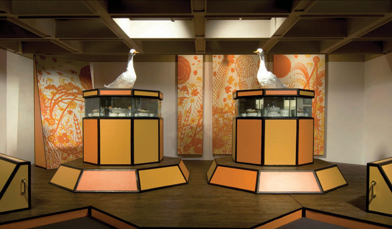 《和玉烧腊店》,2009年 木头、层压材料、玻璃、橡胶、 合成树脂、鸭子填充标本 6 x 4 x 4米