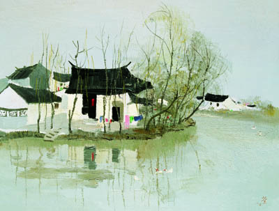 吴冠中 水上人家 1980 木板油画 46 x 61 cm
