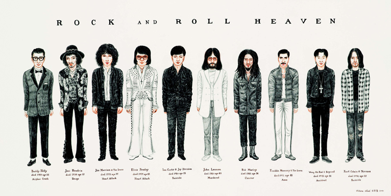 Rock and Roll Heaven, 2010, Color pencil on archival cardboard, 75 x 125 cm