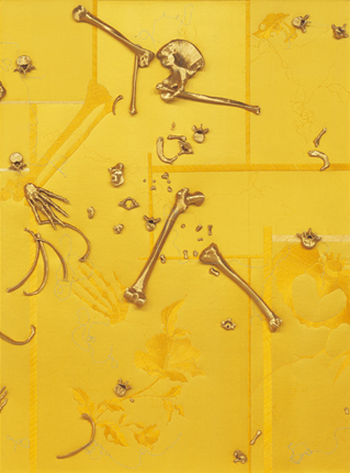 Previous ImageNext Imagelintianmiao_1 The Gold Sameness (detail), 2011, Embroidery on screen, silk cloth, resin skeleton, gold thread, 504 x 250 cm