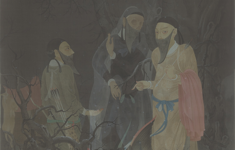 Next Imagehao liang(detail)_featureimage The Hunter and the Transformations of Hell, 2011, Ink and color on silk, 147 x 230 cm (detail)