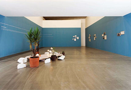 Previous ImageNext Imageliuding_2 Walls: Conversations, 2010, C-print, paper, frame, mp4, Variable size, Foreground left: Friendship No.4, 2010, Wood, paint, white marble, water, plant, terracotta pot, lamp, Dimensions variable