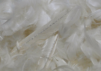 Feathers Project, 2011, Installation, scripted white feathers and circular mirror, 2 m