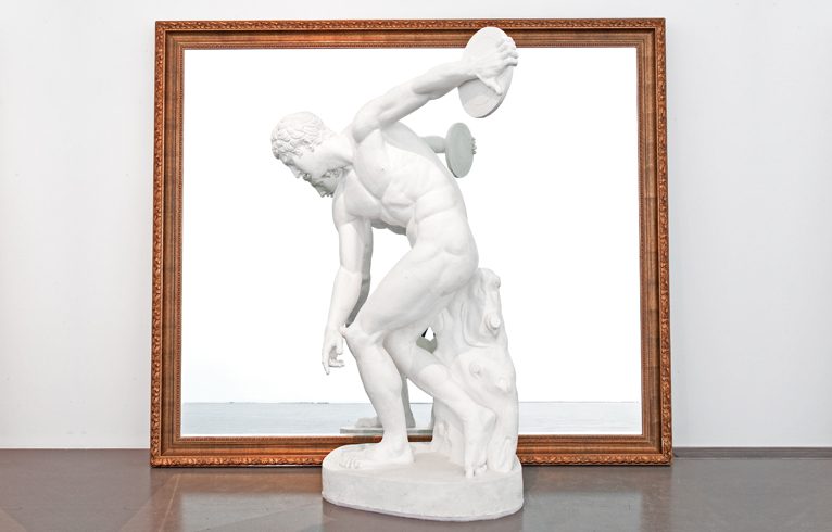 suijianguo_featureimage_1 Folding Space, 2008, Cast bronze, mirror, Sculpture: 172 x 115 x 72 cm, Mirror: 192 x 223 x 10 cm