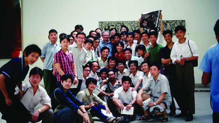 一群美院油画系的学生受邀参观了展览的预展。图为他们和波士顿博物馆馆长方腾的合影。