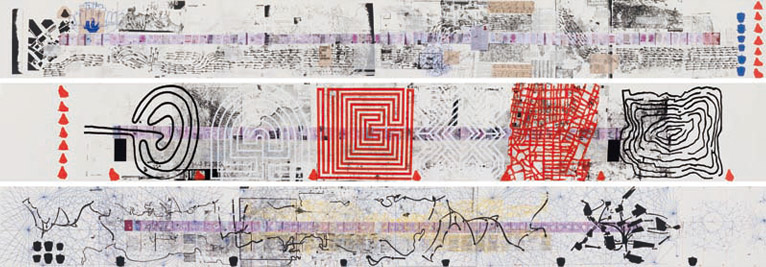 model_featureimage copy Rirkrit Tiravanija, Untitled 2008-2011 (the map of the land of feeling) I-III, 2008-2011 Offset lithography, color silkscreen, chine colleé 91.4 x 854.4 cm (open), set of 3 scrolls, edition of 40