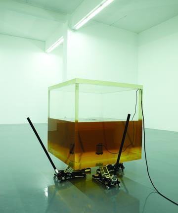 Previous ImageNext Imagehuang ran-3 The Weakness of Will, and the Fear of Society 2012, Acrylic tank, oil, electronic water pump, floor jack 120 x 120 x 150cm