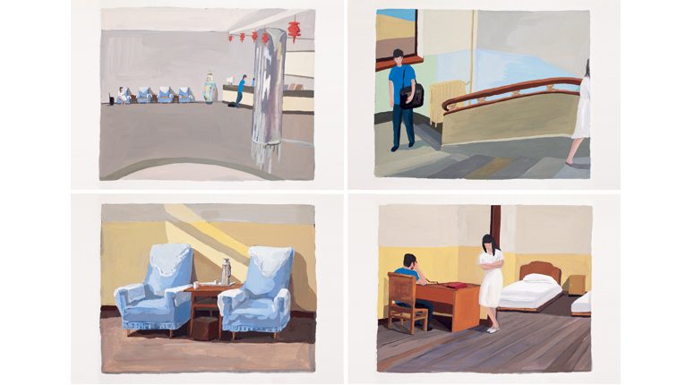 Youyi Hotel 1-4 2011 Acrylic on paper 25.5 x 20.5 cm each