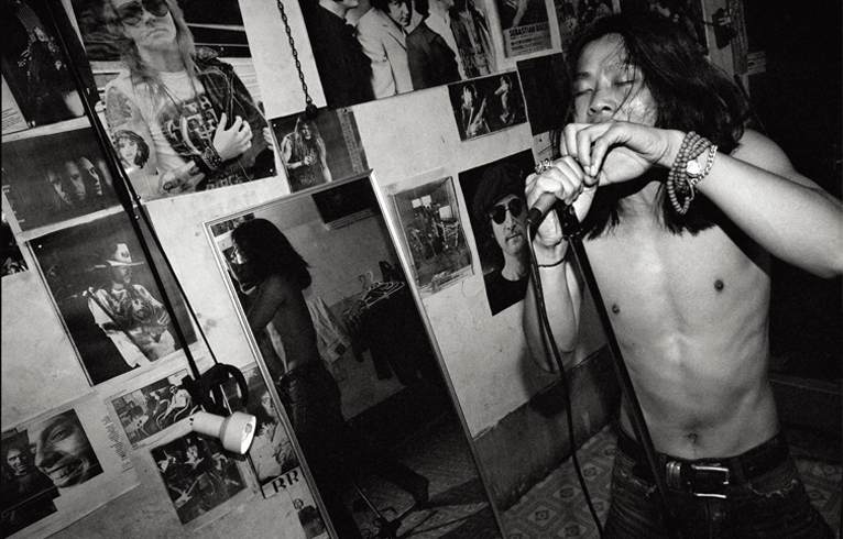 1994. Zuoxiao Zuzhou at his East Village house giving me a personal performance. The inside of his house was plastered with playbills from the Western rock musicians he most revered—you could literally see what his ideals were. A good friend of Zuzhou’s, the first time I went to Germany I bought a real bargain of a handmade guitar for him, which became one of his most favorite instruments.