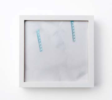 Cecile B. Evans, Here’s to Nick(framed), 2011, Collage made from Schirmer test strips, ink, and screenshots from Meryl Streep movies, 25.4 x 25.4 cm