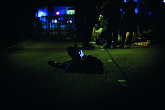 躺在街道上刷手机的学生