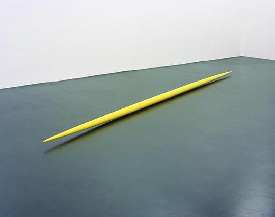 《椭球(黄)》, 1976年, 木制品上色, 9 × 9 × 486 厘米