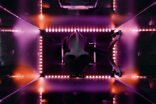 Next Image11c_MG_8579_p1_540 Skull Coffin Manifold KNMWT 17000, 2014 View of “Premier Machinic Funerary: Part II,” 2014, Carl Kostyál, London Courtesy the artist and Société, Berlin