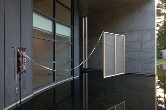Previous ImageNext ImageMohri3_1fff Oni-Bi (Fen Fire), 2013-14 Glockenspiel, solenoid, drumstick, net window, conductive strings, approx. 250 x 300 x 80 cm PHOTO: Kuniya Oyamada