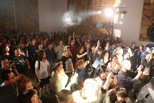 Zhang Ding reproduit le concert de rock mythique qui eut lieu en 1991 sur la Place Rouge, à Moscou. Durant la performance à laquelle participent quatre groupes, 13 morceaux sont interprétés. L’espace est décoré de statues noires et de panneaux muraux dorés et parcourus de marbrures.
