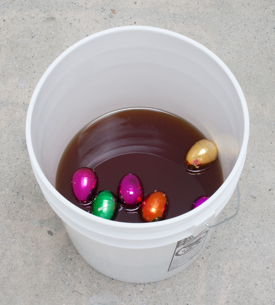 《潘通表面》, 2016年, 水桶、动物饭店的花生油,塑料复活节彩蛋, 36.83 × 29.21 × 29.21 厘米