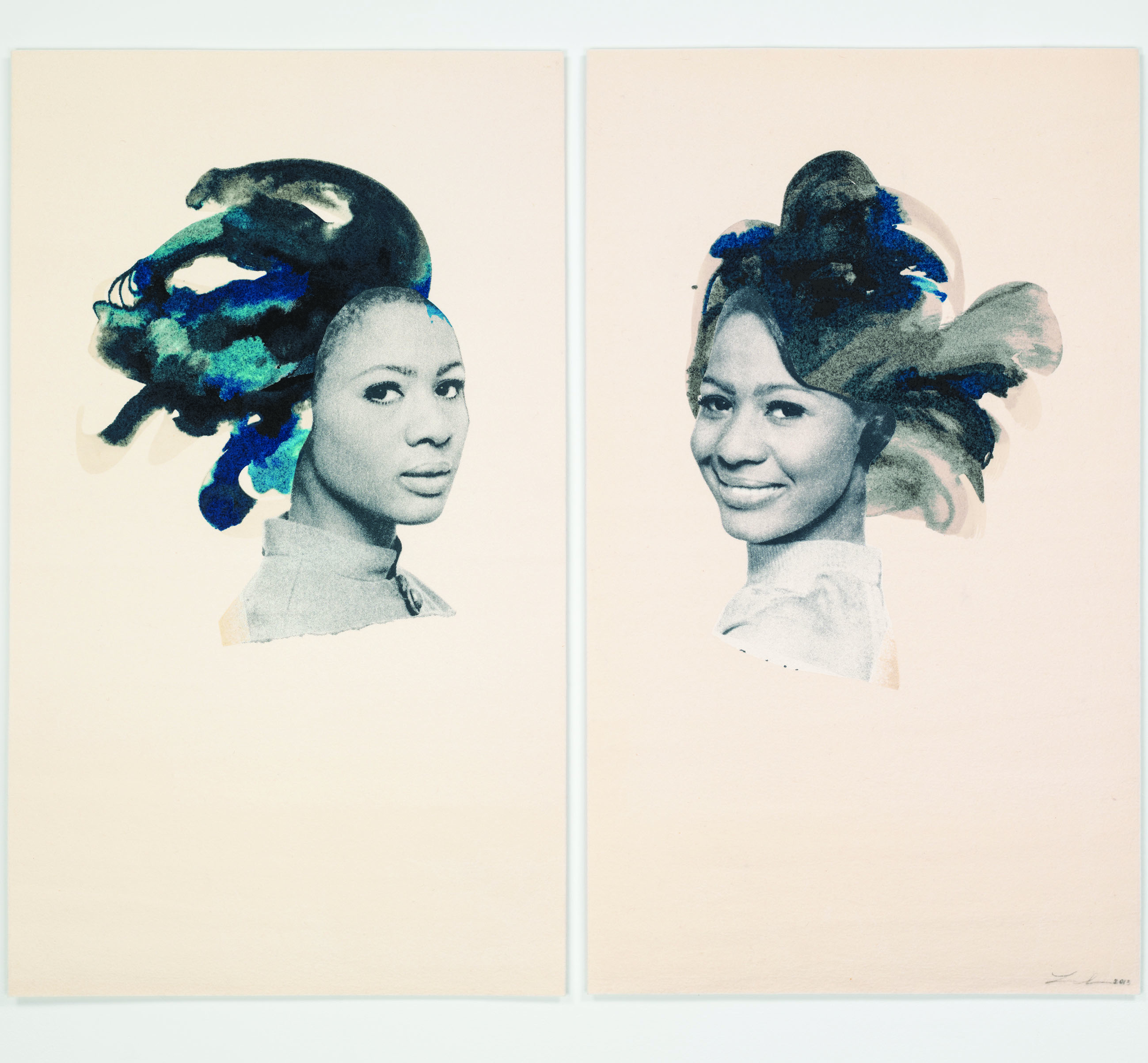洛娜·辛普森,《双面肖像》,2012年,纸上拼贴与水墨,22.1 × 28.4 厘米