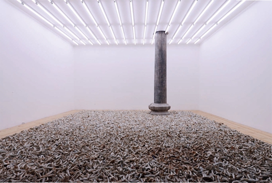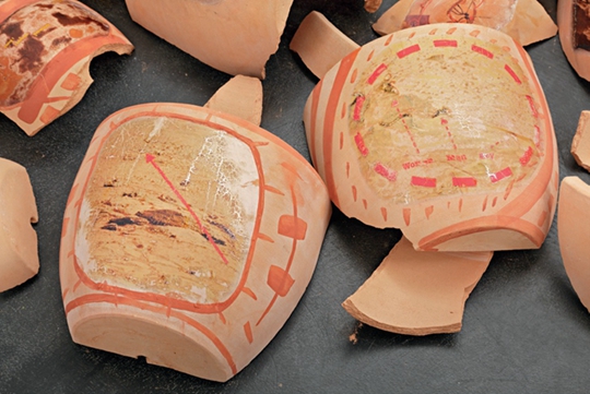 《探路者》,2014年,陶罐碎片、数码照片喷印,30×120×120厘米