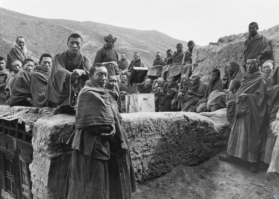 Joseph Rock, A Group of Lamas Listening to Music on a Phonograph, 1926, Qinghai