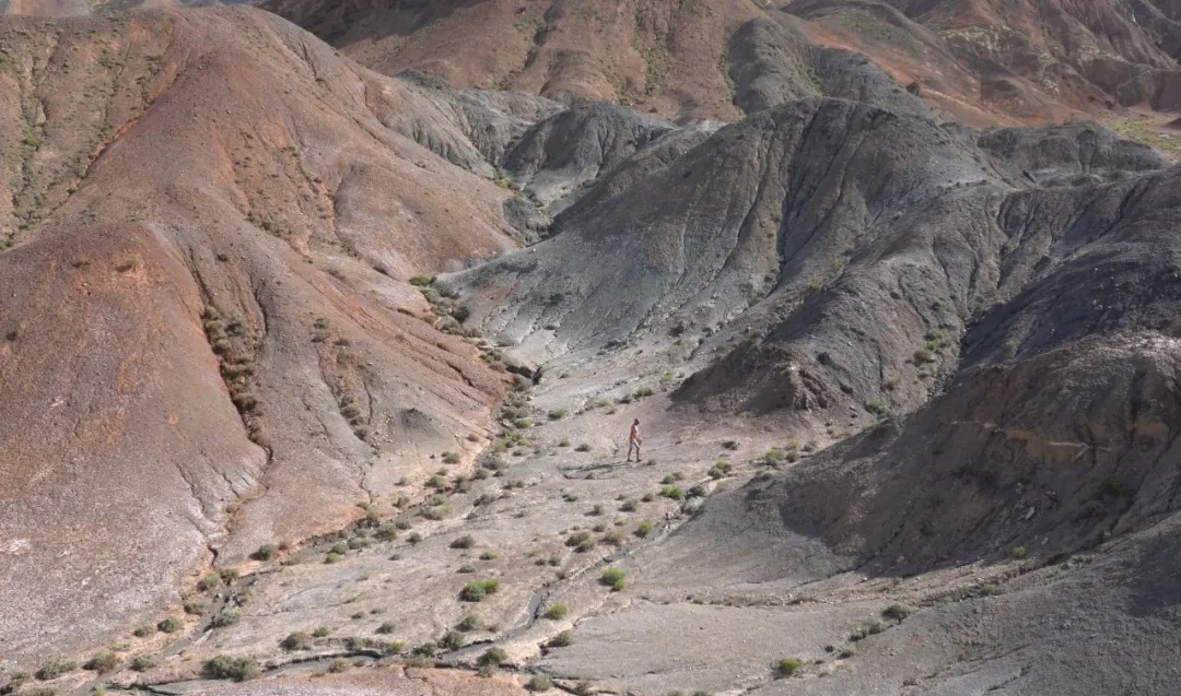 In the summer of 2023, CLC Gallery in Beijing presented Yu Guo’s solo exhibition, “From Ridge to Ridge.” For Yu, venturing into the mountains is not only a way to position oneself, but also a form of physical training in how one senses space and scale. The 55-minute video work Mountain Range (2023), featured in the exhibition, seems to carry the tone of an academic ethnographic film. The work centers on the Altai, Tianshan, and Kunlun mountain ranges, all situated in Xinjiang—a region long examined by anthropologists and ethnographers. Yu deliberately structured the film using chapter divisions modeled after the table of contents of an academic thesis. In sections addressing “local knowledge,” he even includes actual scholarly citations. Yet this seemingly formal and canonical editing is continually disrupted by segments resembling travelogues. In one instance, the artist is seen interacting with local children who spontaneously burst into a viral social media song: “I am from Yunnan—from Nujiang, Yunnan.” Yu moves through the mountains, using his camera and body to engage with the varied geographies, events, histories, and people of each locale. These serendipitous encounters inject into his video practice a kind of vibrant openness that resists institutionalization, creating fissures within the otherwise “rigid” structure—prompting viewers to question standardized, singular narratives of place.