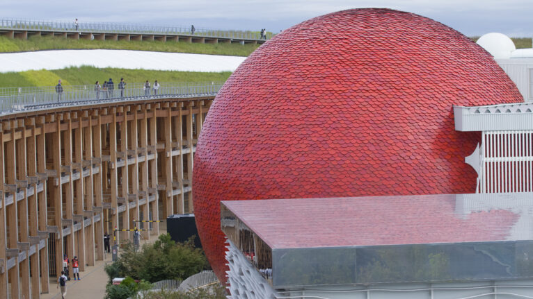 只需看一眼藤本壮介为2025年大阪世博会打造的标志性建筑大屋根(the Grand Ring),人们便会立刻联想到那个源远流长、被称为“世界内部”(World Interior)的建筑传统。这一传统可以追溯到1851年伦敦首届世界博览会上那座由玻璃与铁构成的巨大水晶宫。此后,在一届又一届世博会上,“将整个地球共同体收纳进一个包罗万象的室内空间”的雄心反复出现——无论是1967年蒙特利尔世博会上巴克敏斯特·富勒为美国馆设计的测地穹顶,还是2020年迪拜世博会中拥有着巨大钢结构穹顶与360度环形投影屏幕的核心装置。以“多样性中的统一”(Unity in Diversity)为理念构想的藤本圆形围合体,从一开始就显得像是这一建筑母题的最新变体。