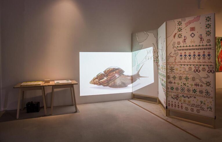 Snail mucus is poisonous and needs to be thoroughly cleansed before consumption. The snail that followed historical colonial migration became a part of Indigenous heritage in the swirls of history. However, the Han Chinese do not eat snails and think it is unclean. Different and new community boundaries are born. Chang En-Man combines cooking, sharing food and recipes with other artists and visitors with embroidery, singing, installations and video to engage a varied way to tell how this encounter happening in a slit ignites whole new understandings about knowledge and comfort. Colonial contacts are not all random or uncontrollable, sometimes they also grow new antennae.