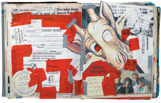 伊萨·根泽肯,《我爱疯狂的纽约城》,1995年至1996年,三本书籍上的纸面拼贴、照片、胶带,39 × 32 × 7 厘米(单本)